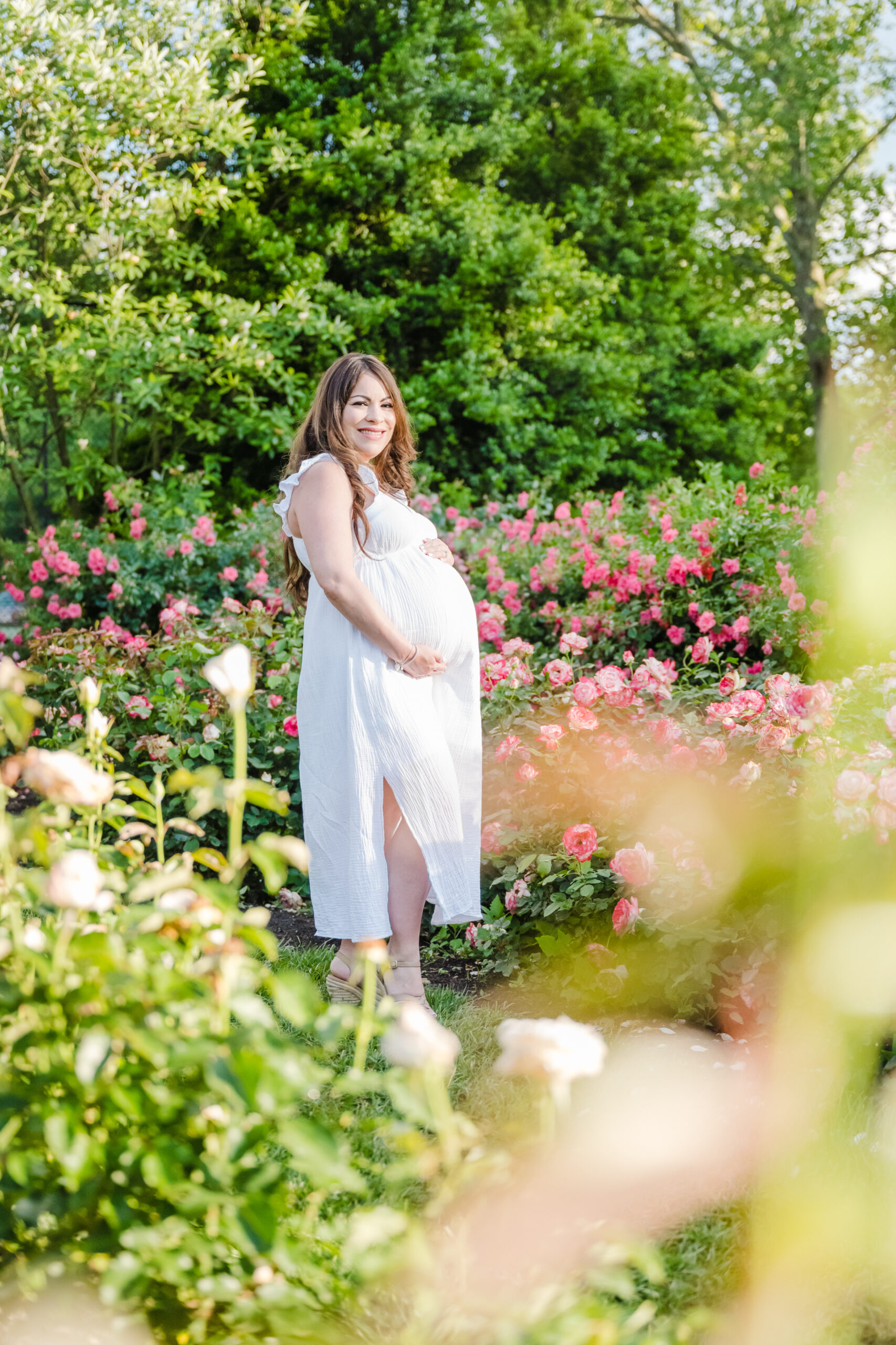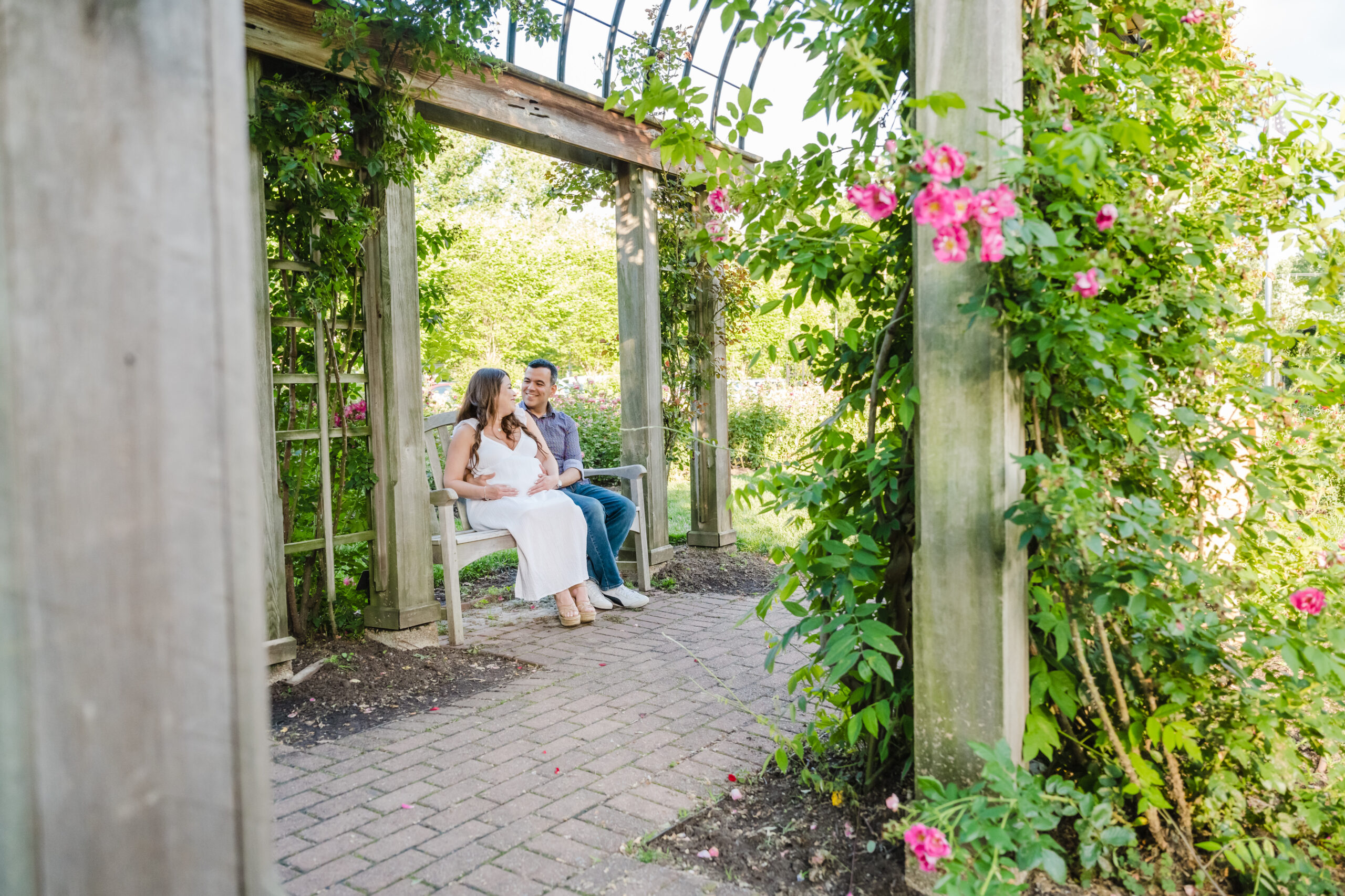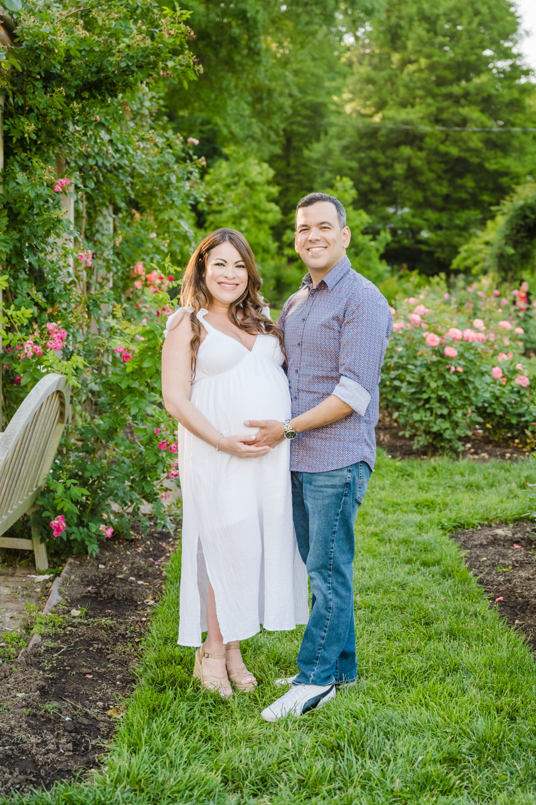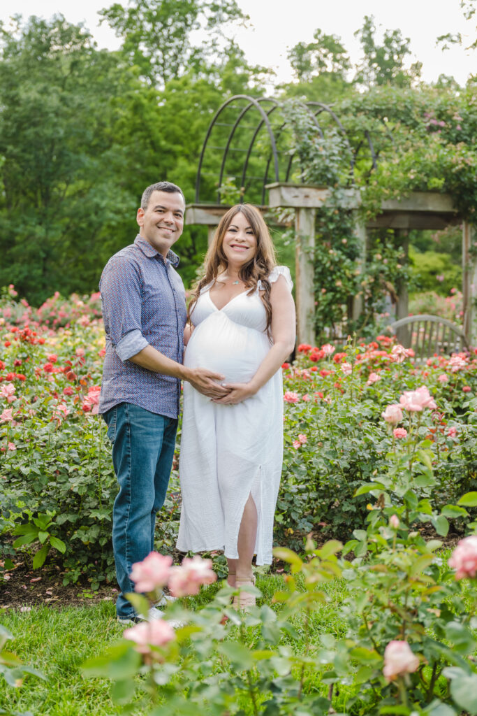 The Bon Air Rose Garden offered the perfect setting for this late pregnancy maternity session. The garden was full of greenery, soft blooms, and winding paths that allowed us to move gently through the space. The environment felt peaceful and unhurried, which matched the pace of the session beautifully.