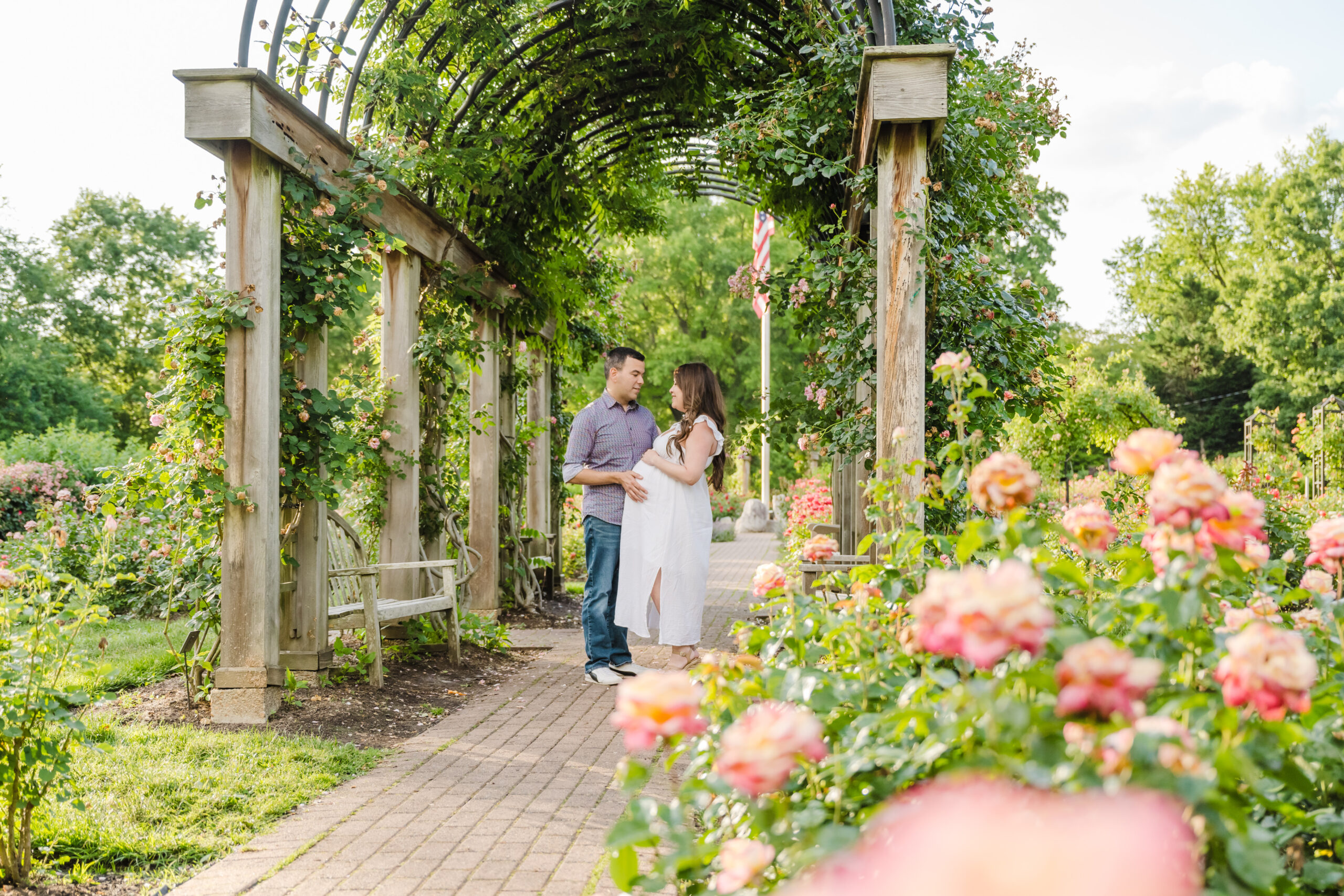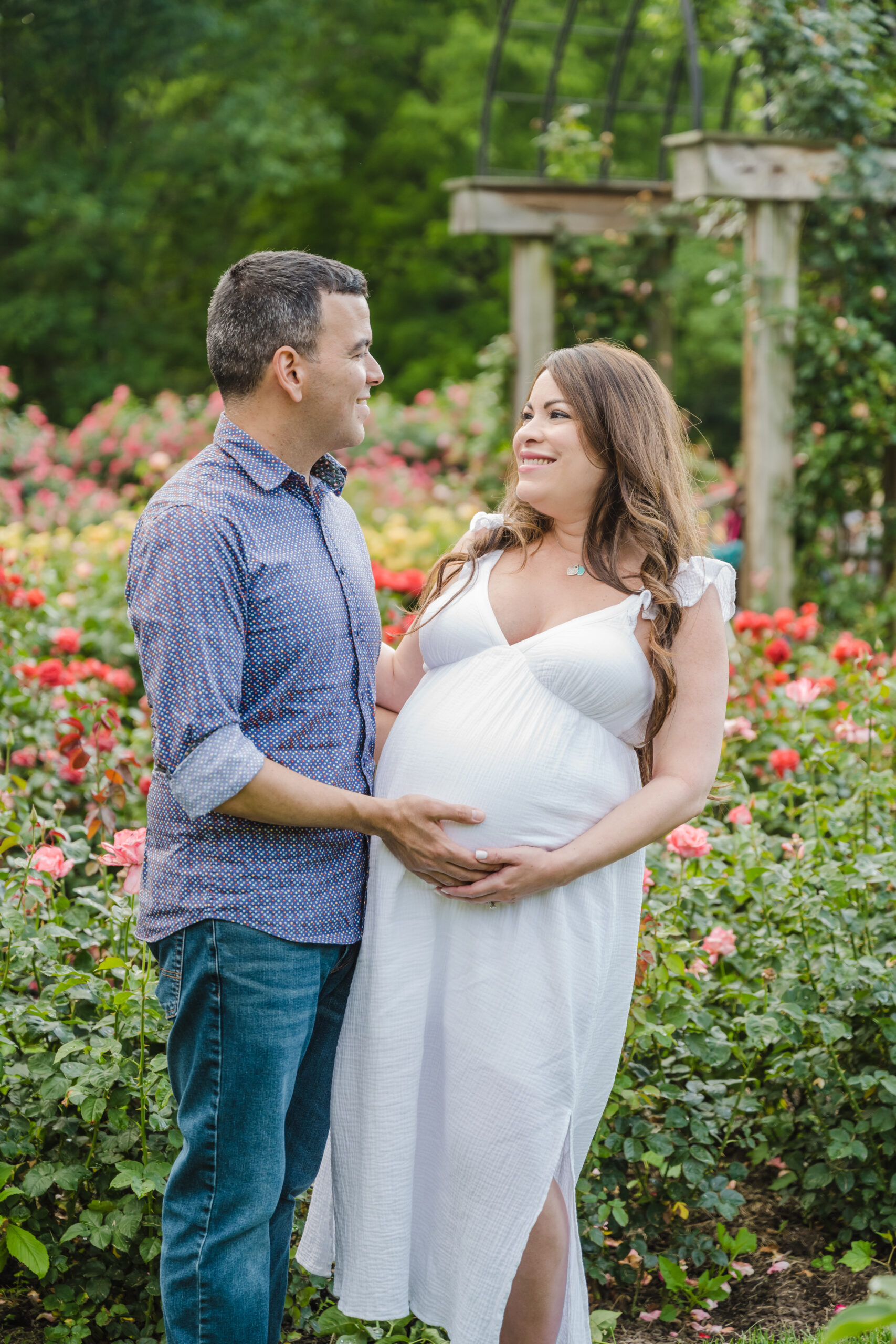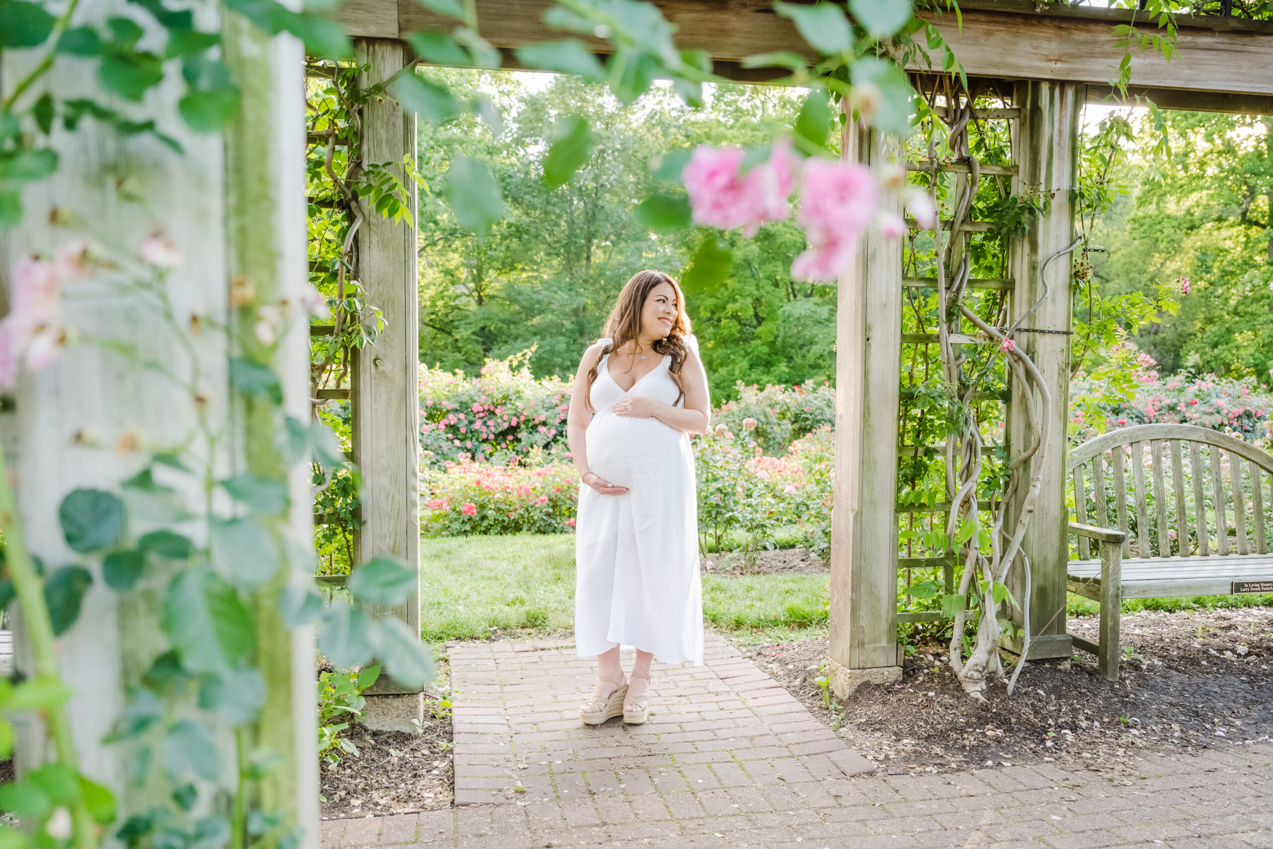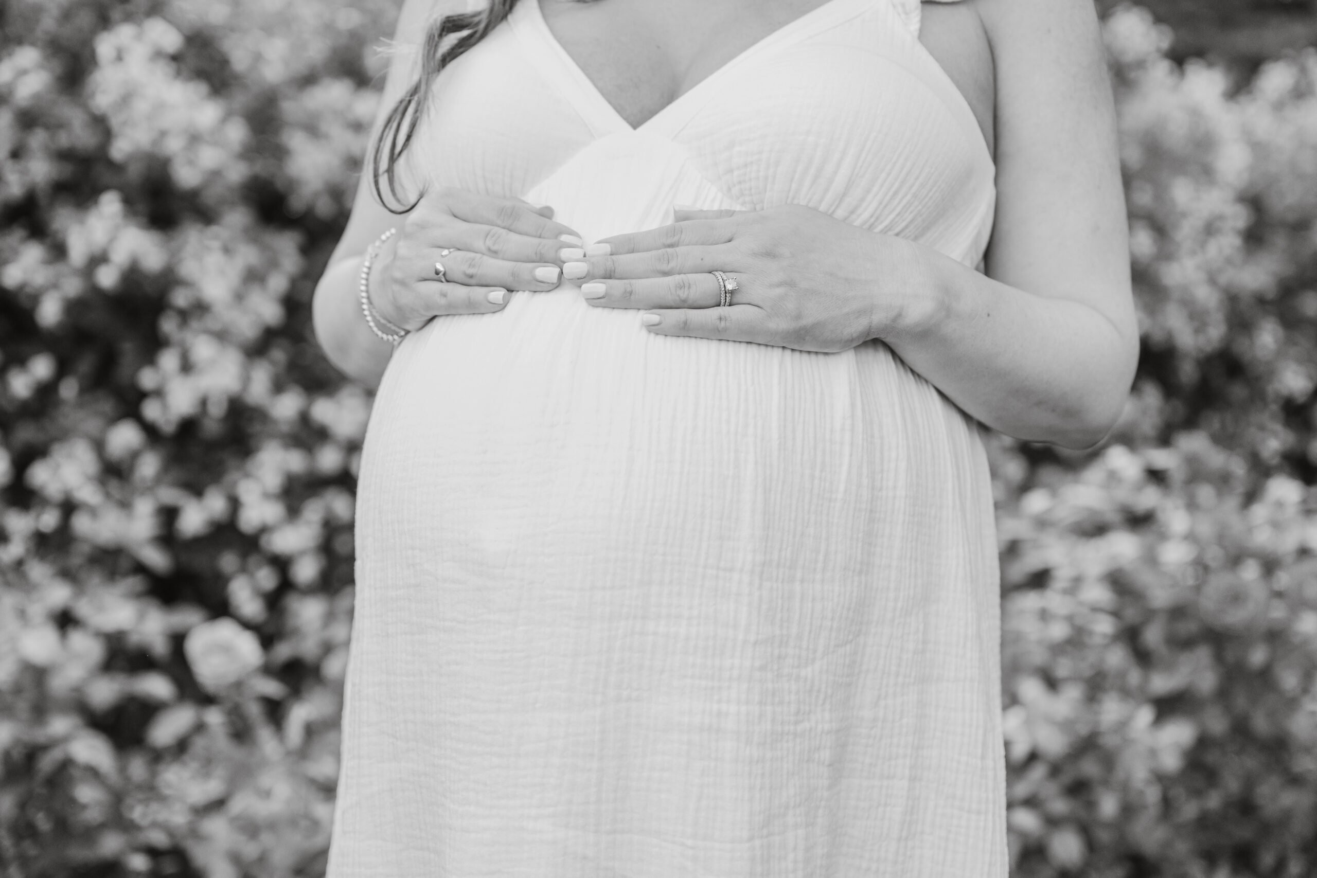 The Bon Air Rose Garden offered the perfect setting for this late pregnancy maternity session. The garden was full of greenery, soft blooms, and winding paths that allowed us to move gently through the space. The environment felt peaceful and unhurried, which matched the pace of the session beautifully.