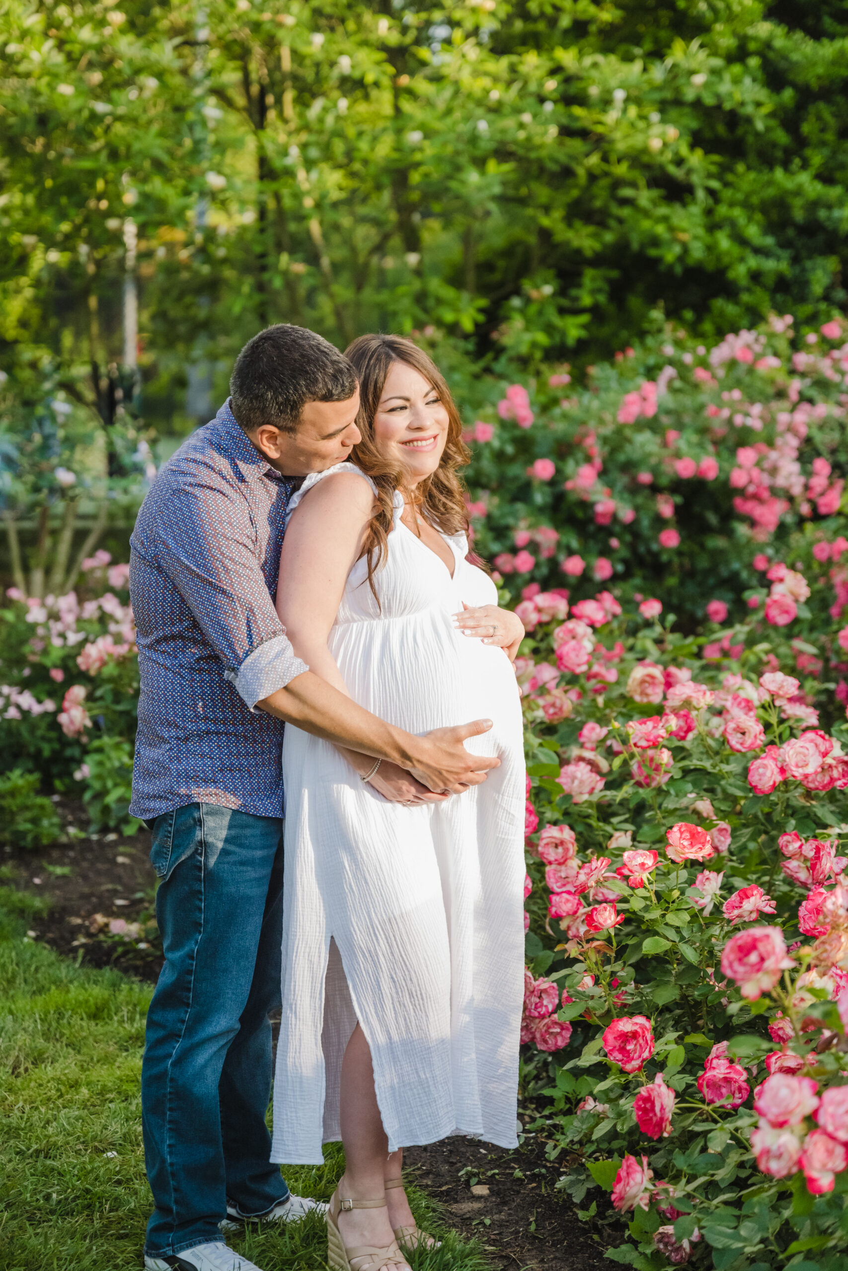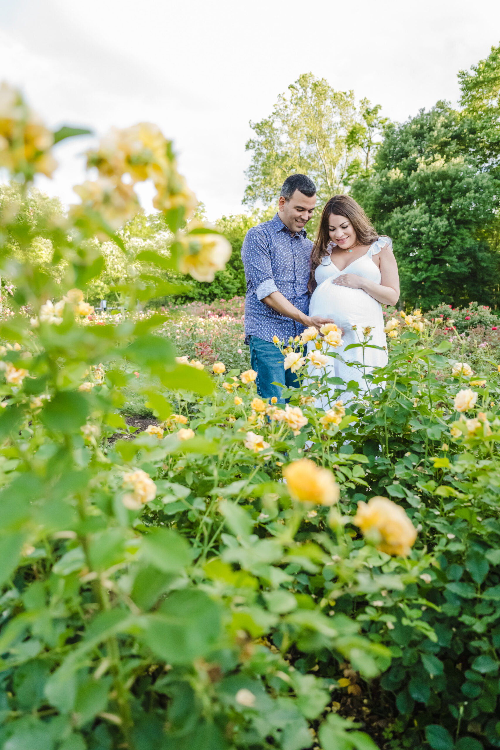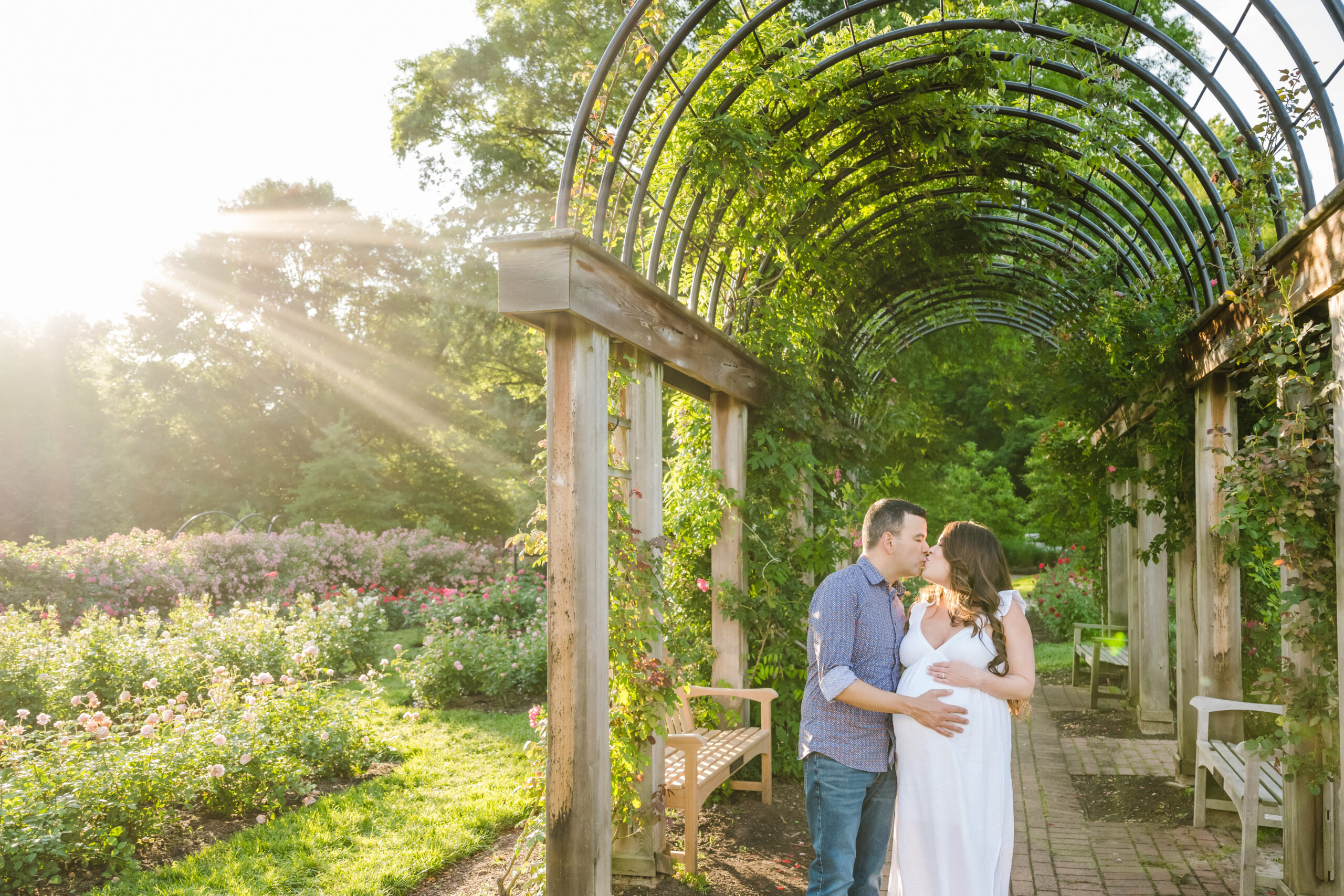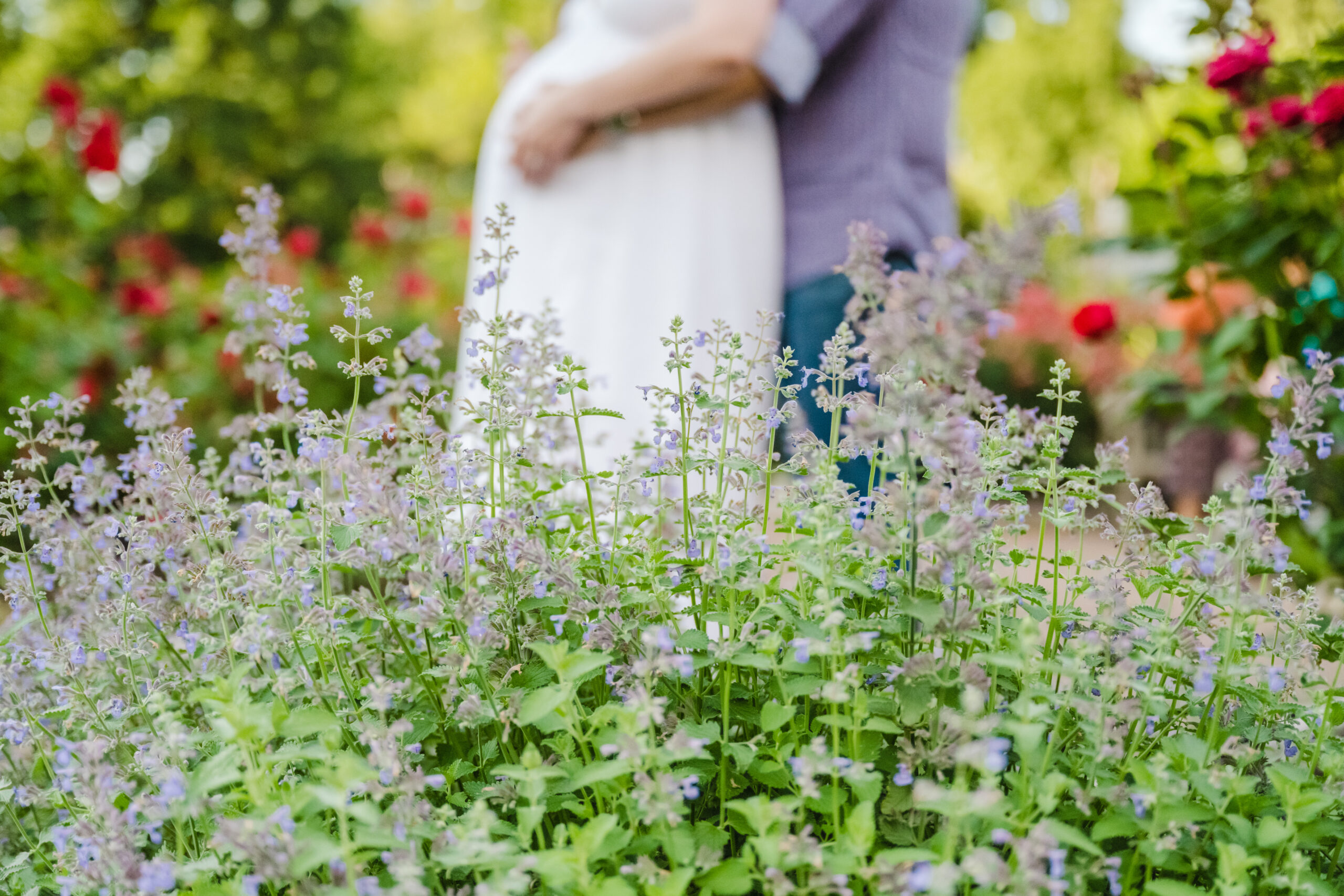 The Bon Air Rose Garden offered the perfect setting for this late pregnancy maternity session. The garden was full of greenery, soft blooms, and winding paths that allowed us to move gently through the space. The environment felt peaceful and unhurried, which matched the pace of the session beautifully.