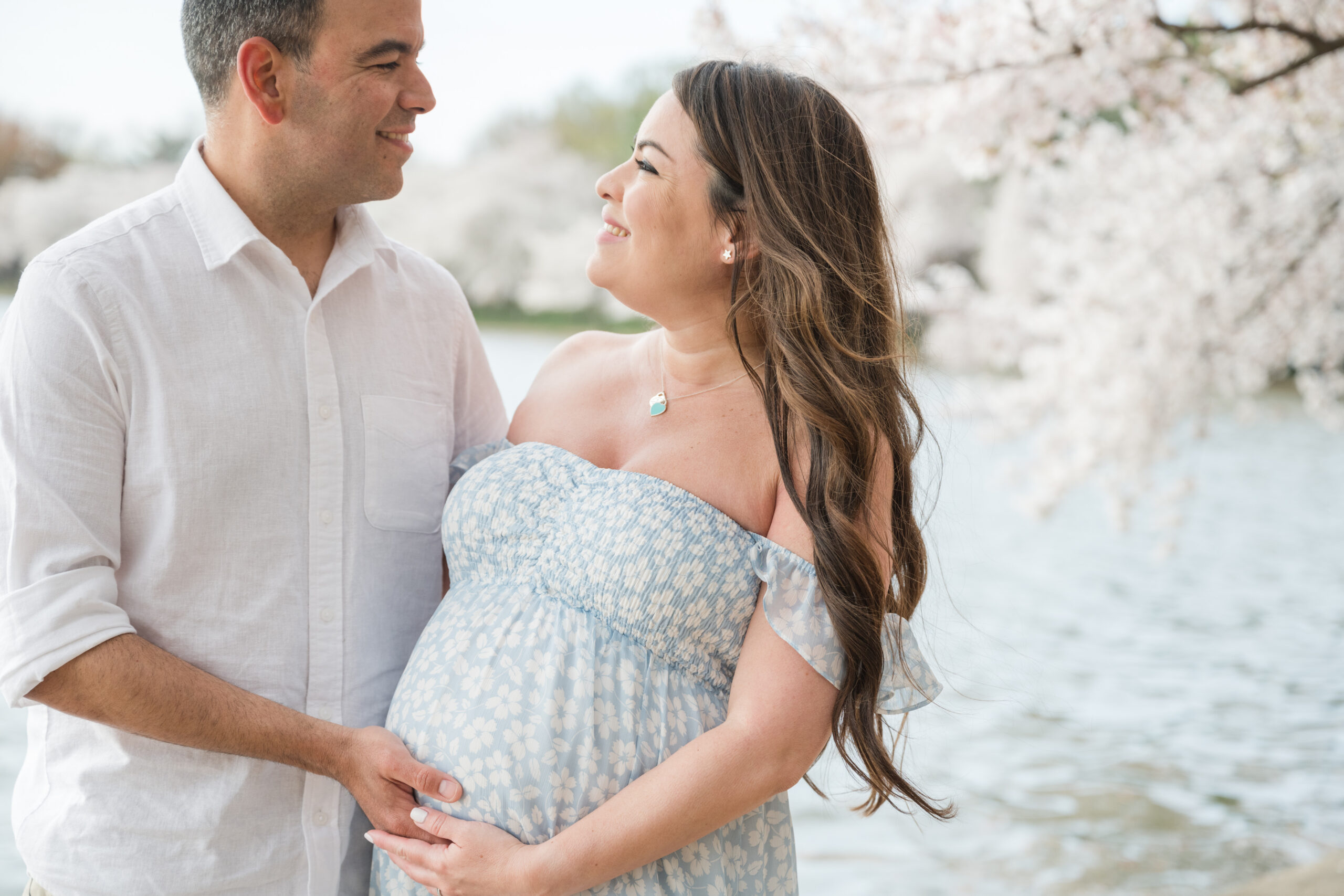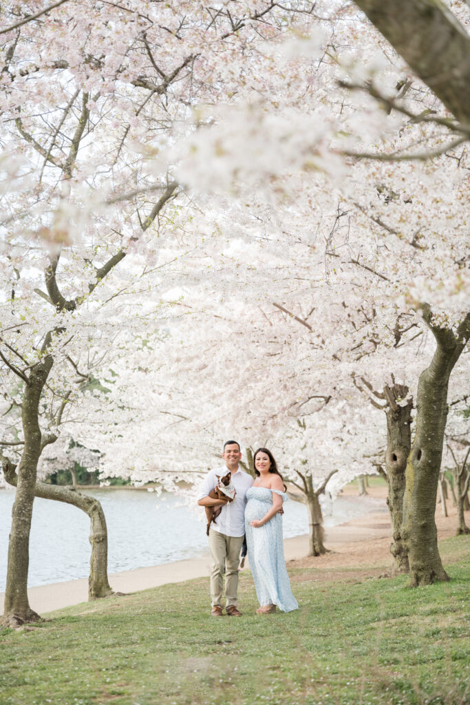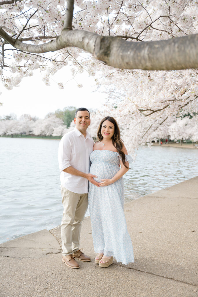 There is something incredibly special about a maternity session during peak cherry blossom season in Washington, DC. Soft pink blooms, glowing light, and the quiet excitement of spring coming to life create the perfect backdrop for celebrating a growing family.